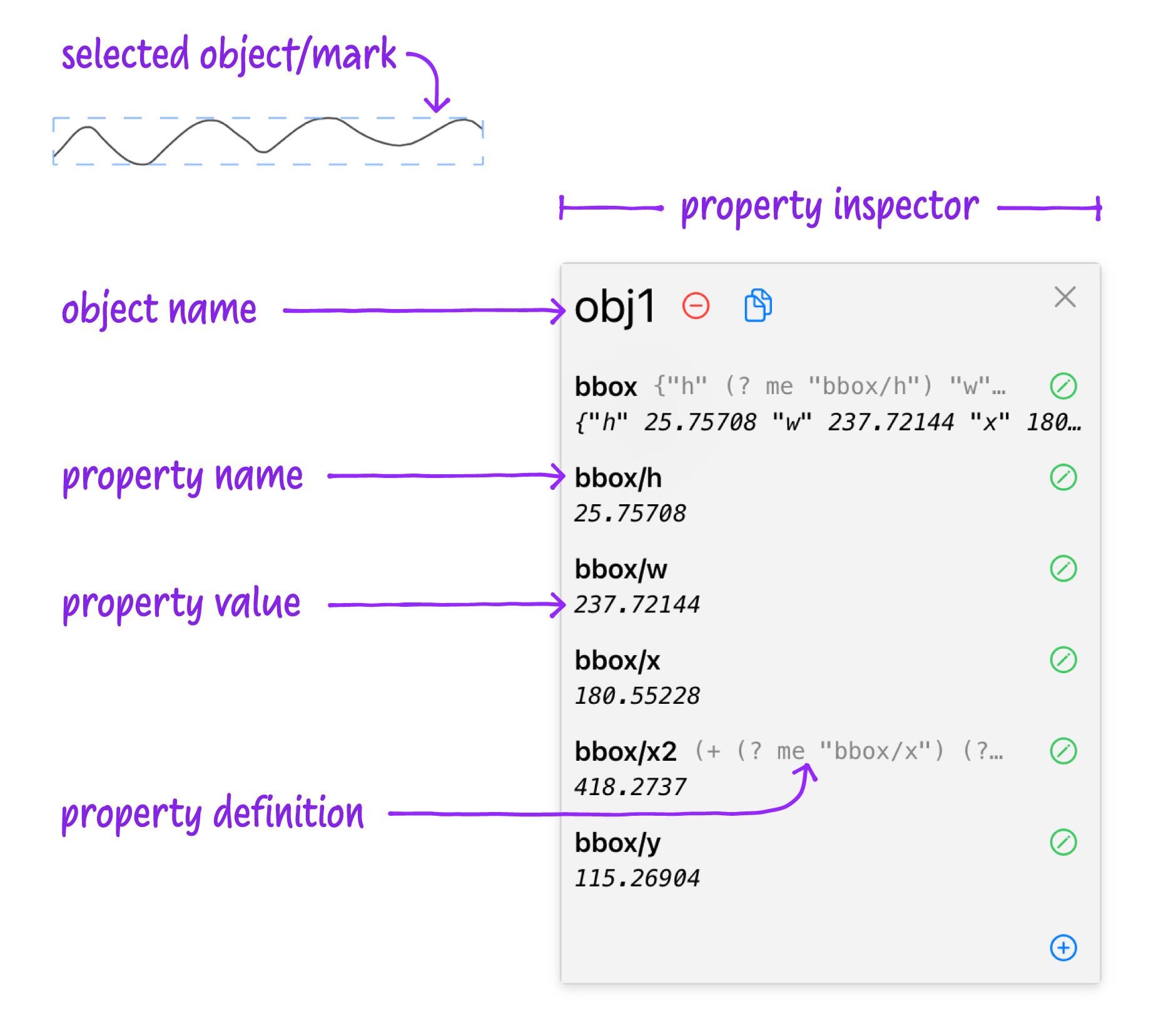 We designed interface affordances for grouping and prototyped methods for working with collections of marks concisely but didn’t arrive at an acceptable solution. Part of this is a programming model issue, where working with a group or collection requires mapping or iterating through them, a set of operations which felt increasingly like it deserved a specialized interface.