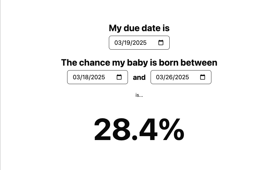 Or it could look like a simple minimal UI with inputs and outputs. We made one such UI for predicting the due date of a baby, given the known statistical likelihoods: