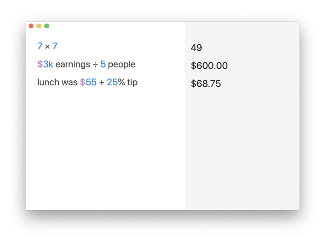 Soulver offers a live notebook interface for performing simple math computations. We are inspired by Soulver’s natural language syntax, which accommodates a variety of units and has a design goal of “[making] common tasks involving numbers more natural for the human brain.” The notebook interface we are now exploring for Ambsheet resembles a Soulver notebook—except instead of just a single column of results, it shows many columns representing possible simulated outcomes.